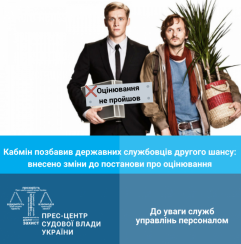 Постановою Кабінету Міністрів України від 5 лютого 2020 року № 58 внесено зміни до постанови Кабінету Міністрів України від 23 серпня 2017 р. № 640 “Про затвердження Типового порядку проведення оцінювання результатів службової діяльності державних службовців”.